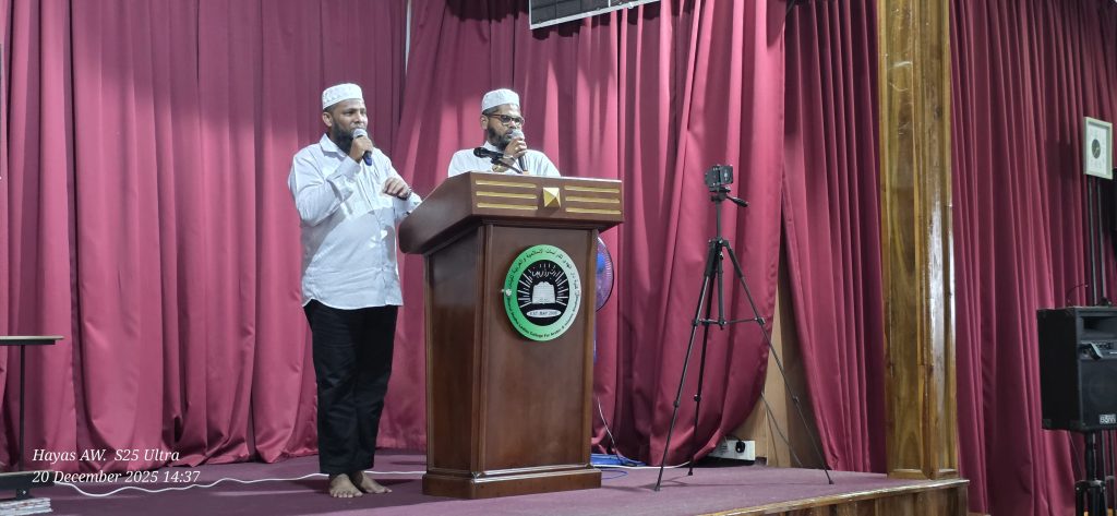 சர்வதேச அரபு மொழி தினத்தை முன்னிட்டு 20/12/2025 சனிக்கிழமை அன்று தாருல்ஹுதா அரபு மற்றும் இஸ்லாமிய கற்கைகள் மகளிர் கல்லூரி மாணவிகளின் அரபு மொழியினை விருத்தி செய்வதற்கான போட்டி நிகழ்வுகள் கல்லூரியின் கேட்போர் கூடத்தில் ளுஹர் தொழுஹையினை தொடர்ந்து 12.30pm-3.00pm வரை கல்லூரியின் விரிவுரையாளர்கள் குழாத்தினால் நடாத்தப்பட்டது .