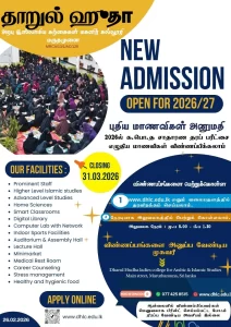 தாருல் ஹுதா அறபு மற்றும் இஸ்லாமிய கற்கைகள் மகளிர் கல்லூரி, 2026/27 கல்வியாண்டிற்கான புதிய மாணவர் அனுமதியை மகிழ்ச்சியுடன் அறிவிக்கிறது. இஸ்லாமிய மற்றும் நவீன கல்வியை ஒருங்கிணைக்கும் தரமான பாடத்திட்டங்களுடன், மாணவியரின் அறிவு, நற்பண்பு